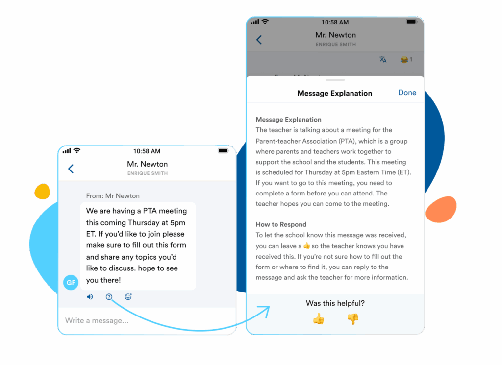 But language is only one barrier. Families may also face challenges with literacy, accessibility, or navigating the U.S. education system. To support them, staff can invite families to use the free TalkingPoints for Families mobile app or web version, which offers: