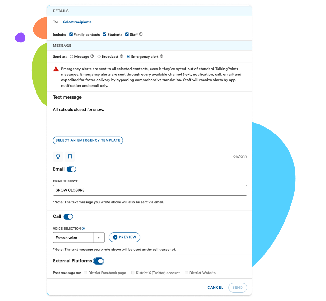 When you need to reach every family with an important message, TalkingPoints helps you ensure that messages are accessible and clear, whether by automated call, text, app, email, web, and social media.